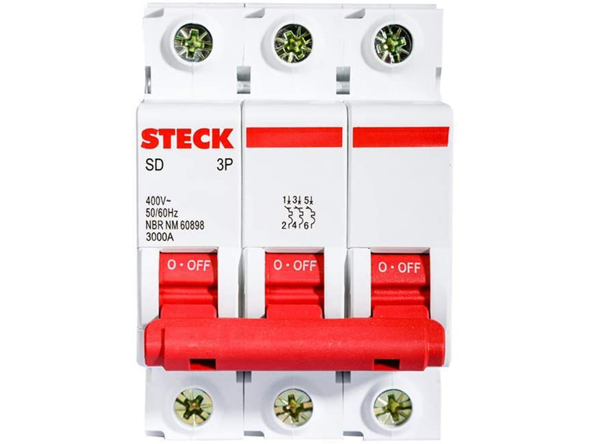 O Disjuntor DIN Tripolar de 50A e Curva C da Stech é um dispositivo de proteção elétrica de alta capacidade, projetado para a segurança de circuitos trifásicos. Sua principal função é proteger os equipamentos contra curto-circuitos e sobrecargas, interrompendo o fluxo de corrente nas três fases simultaneamente. Isso o torna a escolha ideal para motores e bombas elétricas de alta potência, que operam com redes de 220V ou 380V trifásicas, amplamente utilizadas na irrigação agrícola.
